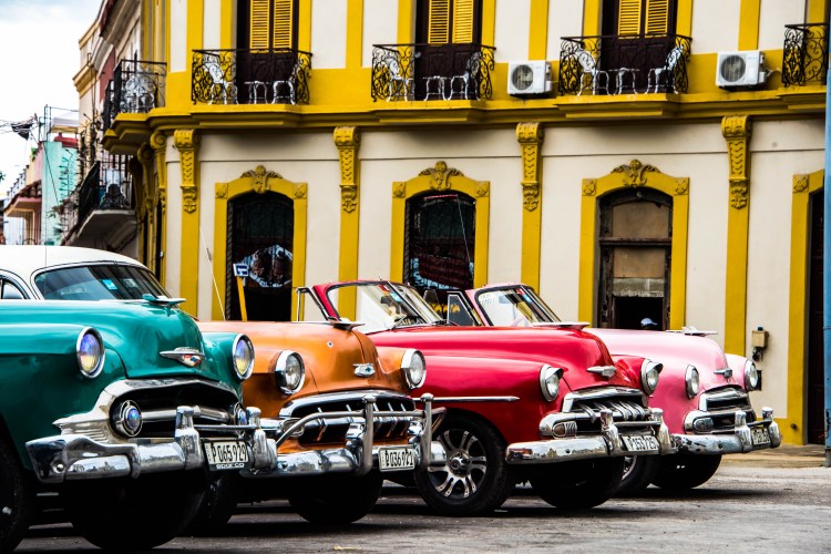 HAVANA, CUBA – APRIL 14, 2017: Classic vintage car the most popular transport for tourist as taxi in old Havana at Cuba.